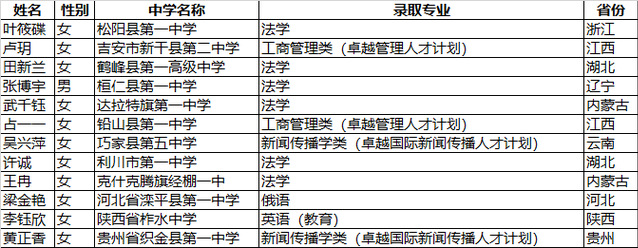 年高校专项计划录取名单予以公示。